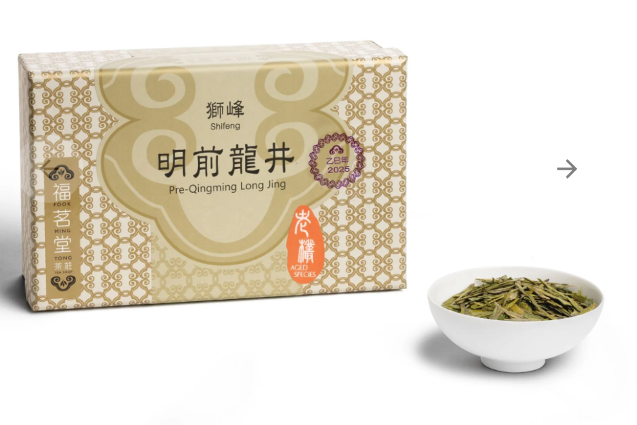 矜貴的老欉是十八棵御茶樹伸延開去的茶祖宗品種,茶香高、味濃醇,尤切合濃茶愛好者的口味,深受港人追捧。今春福茗堂只製作出少量獅峰明前龍井(老欉)供龍井茶迷品嚐。茶葉扁平光滑、厚實勻淨、糙米色、湯色嫩綠明亮、栗香甘醇。